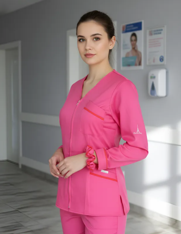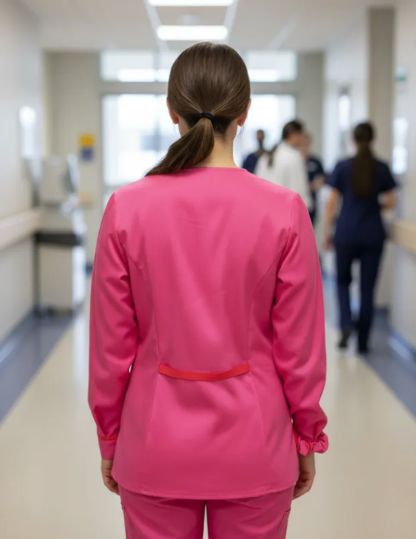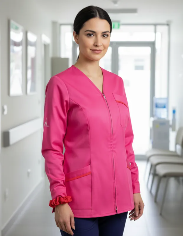 Chaqueta con 2 bolsillos canguro grandes, 1 bolsillo porta celular + 1 bolsillo en pecho. Se ajusta con lazos