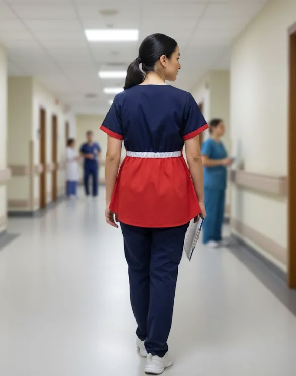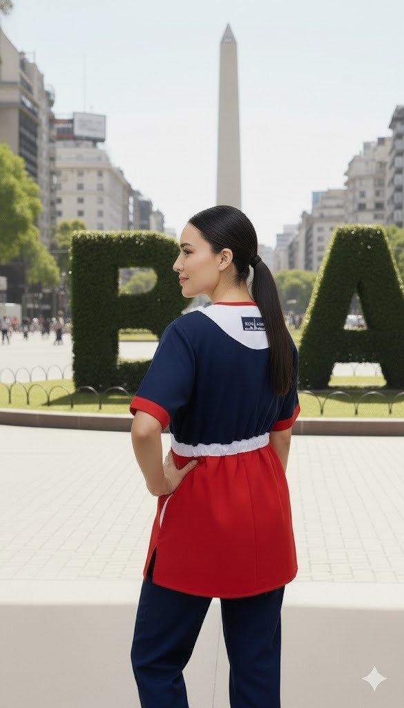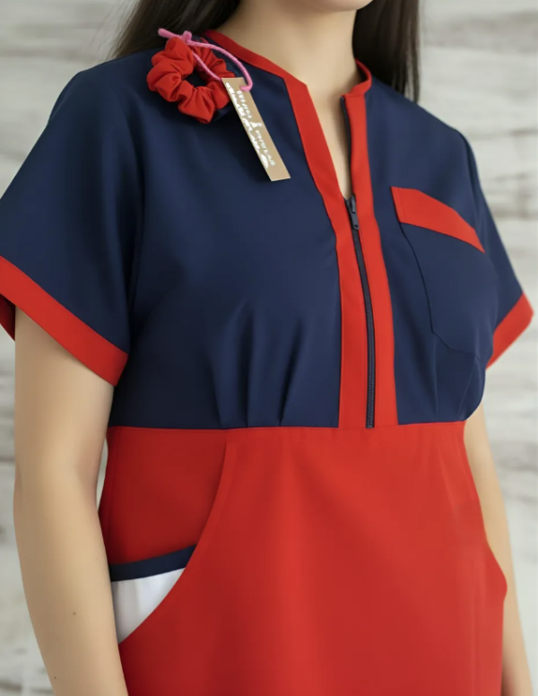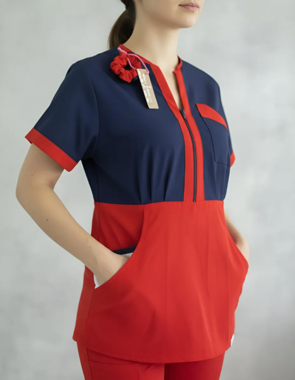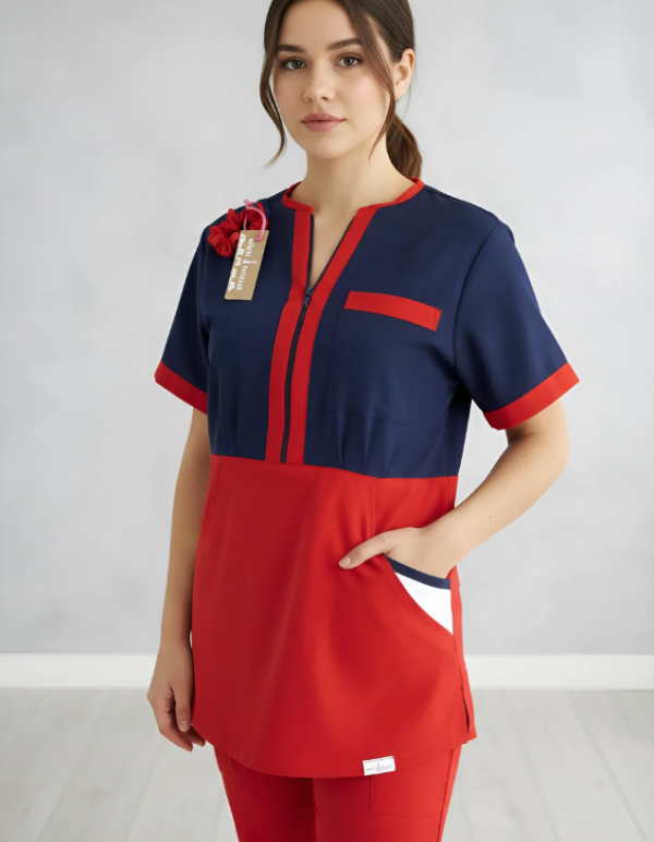 color azul marino con rojo y detalles blancos